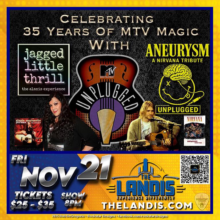 An electrifying tribute to the iconic voice of a generation—Alanis Morissette. Fronted by powerhouse vocalist Melissa Schill, Jagged Little Thrill delivers the raw emotion, edgy energy, and unforgettable sound of Alanis at her peak. Aneurysm is a fearless tribute to Nirvana, channeling the heart, angst, and grit of the Seattle sound that shaped rock history. Please visit www.thelandistheater.com for more information.